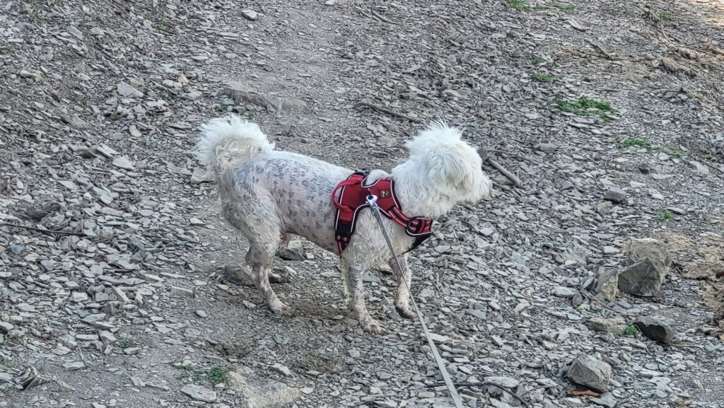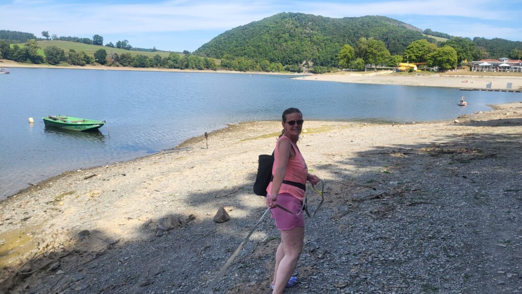 Nachdem uns die Campingplatzvorsteherin versichert hat, dass Hunde überall erlaubt sind, gehen wir heute zu Fuß zum See.