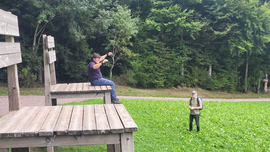 An der Zuflucht angekommen, herrscht bestes Wanderwetter. Es ist etwas bewölkt und ab und zu kommt die Sonne raus. Der Weg ist auch nicht besonders anstrengend. Nur mäßige Steigungen und am Ende ein langes Gefälle und fast immer durch den Wald. Leider gibt es auch nicht viele Aussichtspunkte, aber wir haben ja viel zu erzählen.