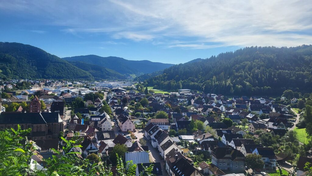 Als wir etwa die Höhe des Kirchturms erreicht haben, gibt es eine kleine Fotopause mit Blick über Hausach.