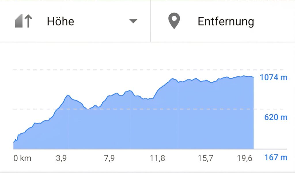 Heute steht eine anspruchsvolle Etappe von Hausach nach Wilhelmshöhe an. Die Strecke beträgt nur zwanzig Kilometer, aber es gilt mehr als 1000 Höhenmeter in mehreren steilen Anstiegen zu bewältigen. Um genau zu sein: 1172 m bergan und 434 m bergab.